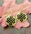 Estos pendientes ligeros y reciclables de latón y cobre están elaborados mediante técnicas de grabado. Cada conjunto contiene un nudo eterno que representa una vida consciente para nosotros y los demás.