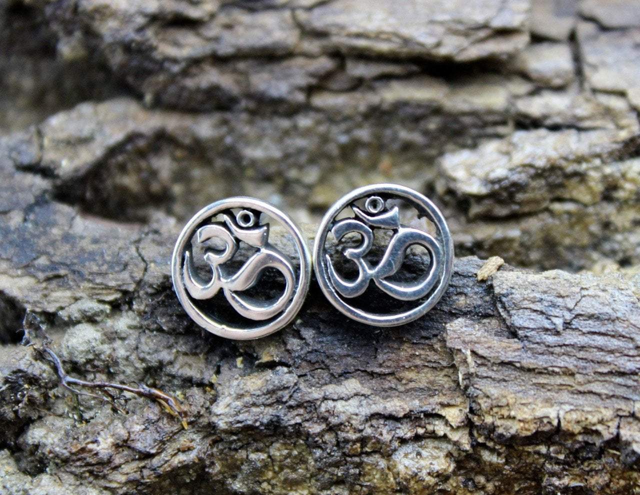 Pendientes clásicos y sencillos de plata de ley con colgante Om circular. Perfecto para el uso diario. Hecho a mano en Katmandú, Nepal.