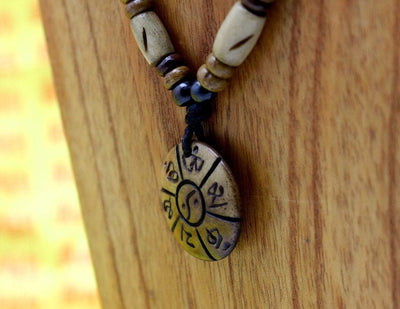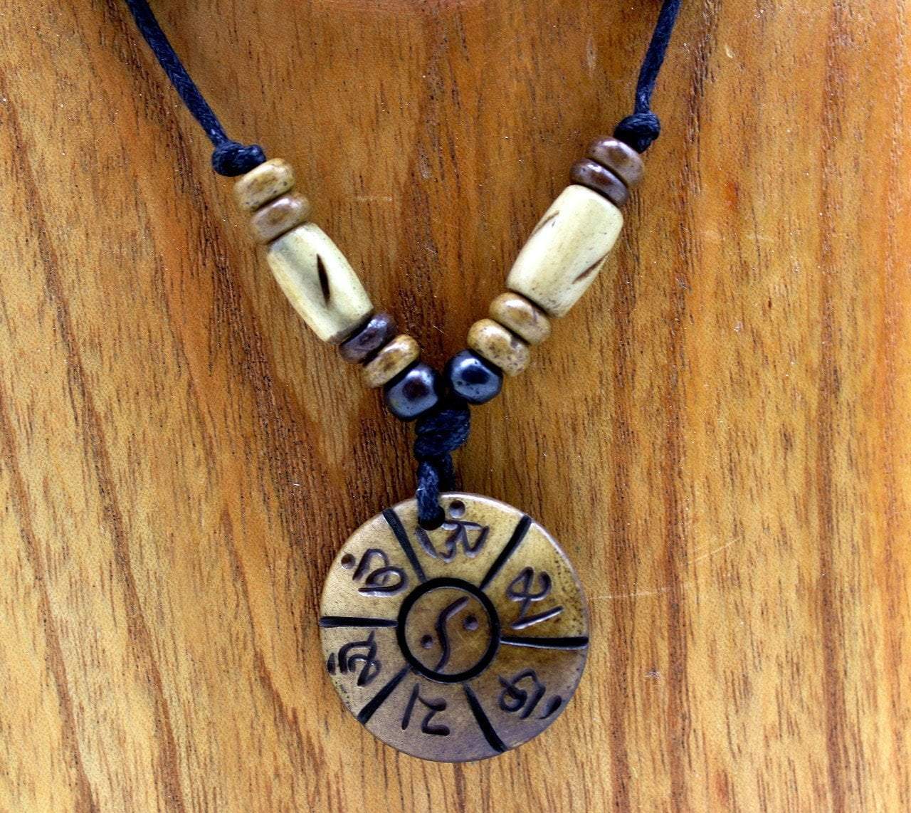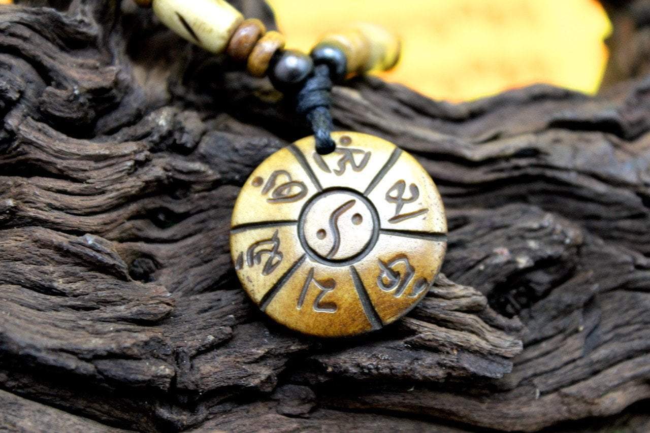 El colgante del mantra de la compasión está hecho de hueso, tallado a mano. 30 mm de ancho
