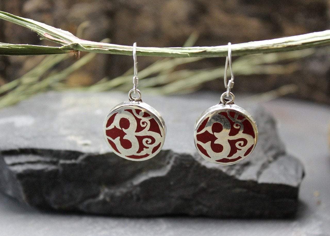 Hermosos aretes de coral sánscrito Om. Se cree que el coral está dotado de propiedades misteriosas y sagradas, y también se le considera una piedra protectora.