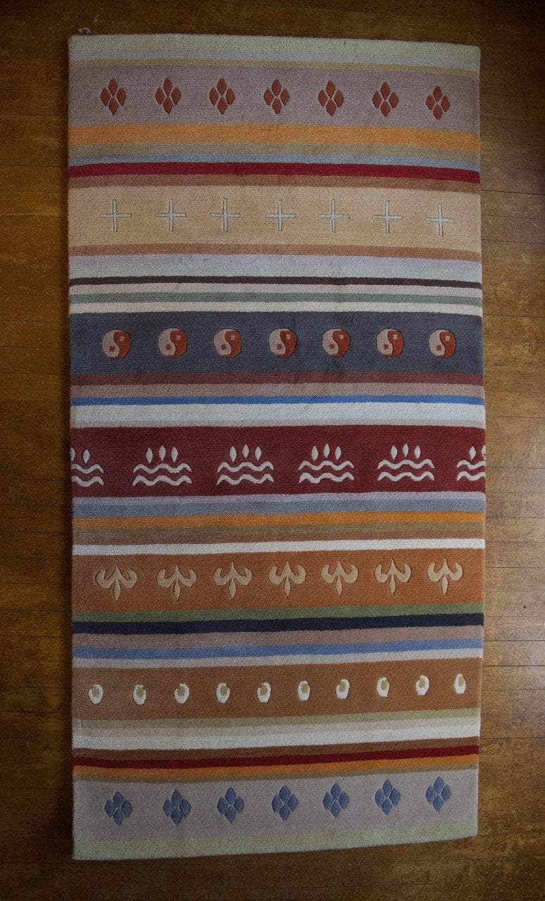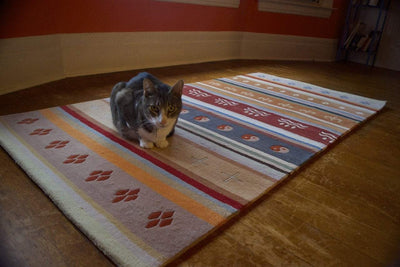 Estas alfombras están diseñadas al estilo de un delantal tibetano o Chuba. Nos encanta este estilo tradicional y tenemos muchos colores y tamaños disponibles. Hecho a mano en Nepal.
