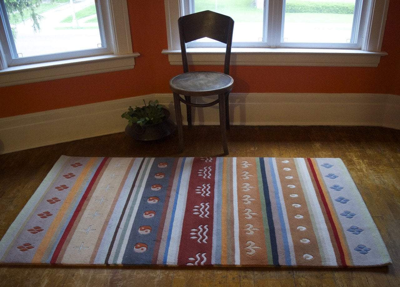Esta alfombra mide 3'1" por 6 pies. 100 nudos por pulgada cuadrada.