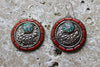 Coloridos y atrevidos, estos aretes están hechos a mano en Katmandú, Nepal, por nuestra artista joyera Karma Dolma. 1 1/4 pulgadas alrededor de latón plateado.