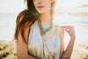 La turquesa es quizás la piedra más antigua de la historia del hombre, el talismán de reyes, chamanes y guerreros. Es una piedra protectora, fuerte y opaca, pero relajante al tacto y curativa para la vista, como tallada en un cielo azul y deslizada a la tierra. El coral es conocido como la piedra de la pasión y puede usarse para reconectarse con la naturaleza y atraer el amor y la prosperidad. El coral también está relacionado con traer paz interior, fuerza y ​​comprensión del propósito.