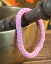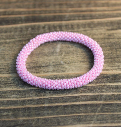 Esta preciosa pulsera enrollable rosa se estira para adaptarse a casi cualquier tamaño de muñeca. Estas pulseras, cuidadosamente tejidas a mano y con cuentas, son de comercio justo y están fabricadas en Nepal por una cooperativa de mujeres con fines benéficos. Perfecto para usar con tus joyas de todos los días o crear una apariencia apilada con tus malas o pulseras favoritas. El 100% de los ingresos se destinará al esfuerzo de ayuda en Nepal. Fabricada con cuentas checas y japonesas de la mejor calidad, la pulsera se estira al pasar sobre la muñeca.