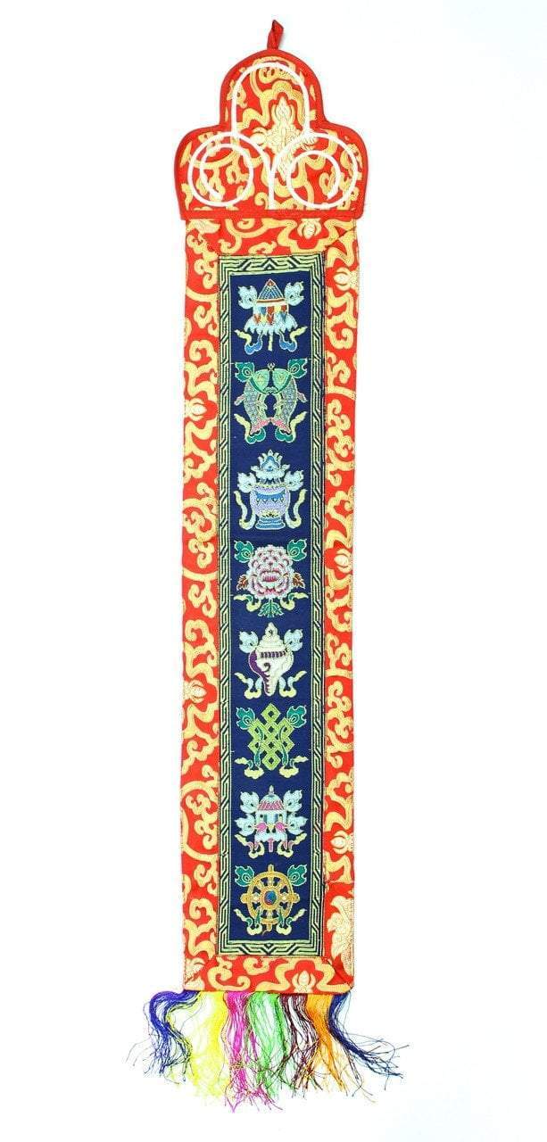 Los ocho símbolos auspiciosos en una pancarta de seda.