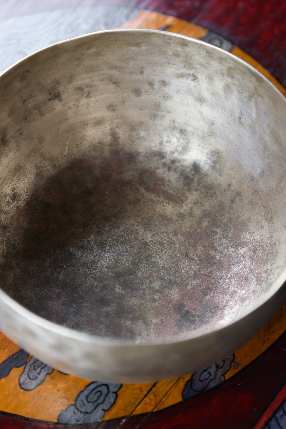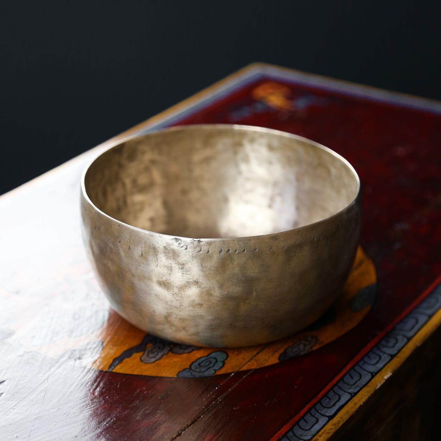 Cada vez que podemos conseguir una pequeña colección de estos cuencos es emocionante ya que son excepcionales. Los cuencos tibetanos antiguos como este son muy buscados por su notable calidad de sonido, ricos tonos y características físicas únicas. ¡Cada marca hecha a mano cuenta una historia de la historia de los cuencos!