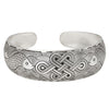 La pulsera totalmente ajustable tiene una banda de 3/4 de pulgada de ancho. La pulsera está hecha de 60 % cobre blanco y 40 % zinc, lo que brinda la apariencia de la plata esterlina con un alto brillo a una fracción del costo. Hecho en Tailandia.