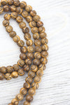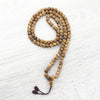 Mala mide aproximadamente 30 pulgadas de diámetro con un nudo ajustable. Las cuentas miden unos 8 mm.