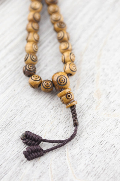 Muchas prácticas budistas giran en torno a la impermanencia. Vivimos sólo en el momento presente y es útil recordar que nada dura. Las joyas de hueso ocupan un lugar destacado en el simbolismo tibetano y a muchos de nuestros clientes de DharmaShop les gusta este recordatorio de que nada dura para siempre.