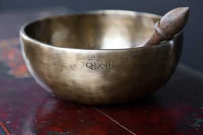 El cuenco suena en una nota G# cuando se golpea con un mazo de lana. Esta nota resuena con el chakra de la garganta. Influye en la comunicación, los sueños, la expresión artística, el buen juicio, la confianza en uno mismo, la sabiduría y la veracidad. Cuando el chakra de la garganta está equilibrado, permite la comunicación libre, ayudándonos a sentirnos centrados y felices.