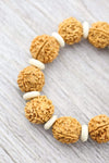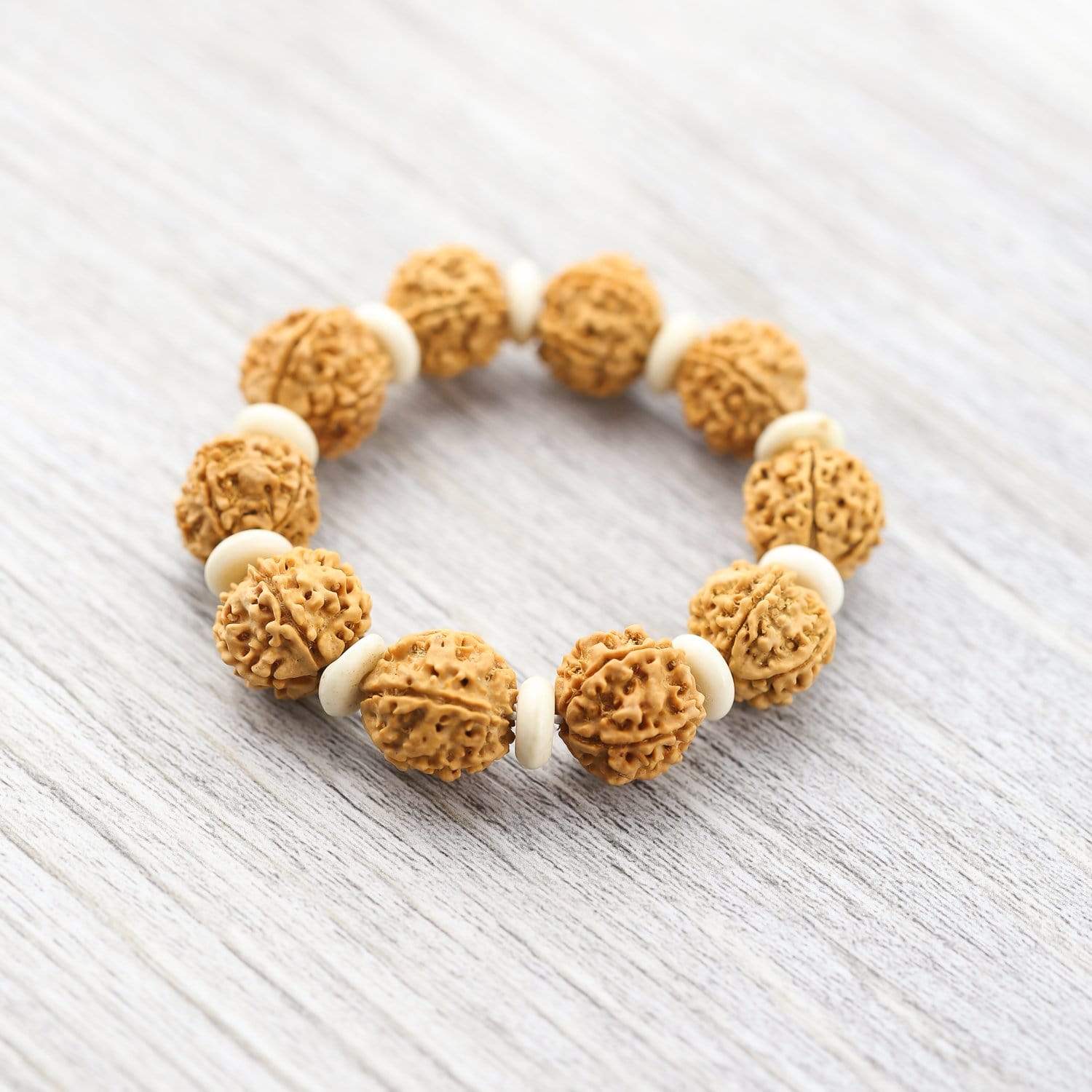 La pulsera mide aproximadamente 6,5 pulgadas alrededor con cordón elástico. Las cuentas de Rudraksha miden aproximadamente 18 mm, los espaciadores de hueso miden 10 mm.