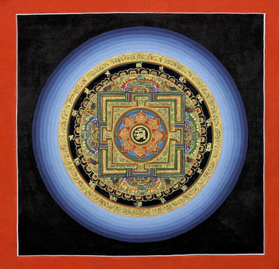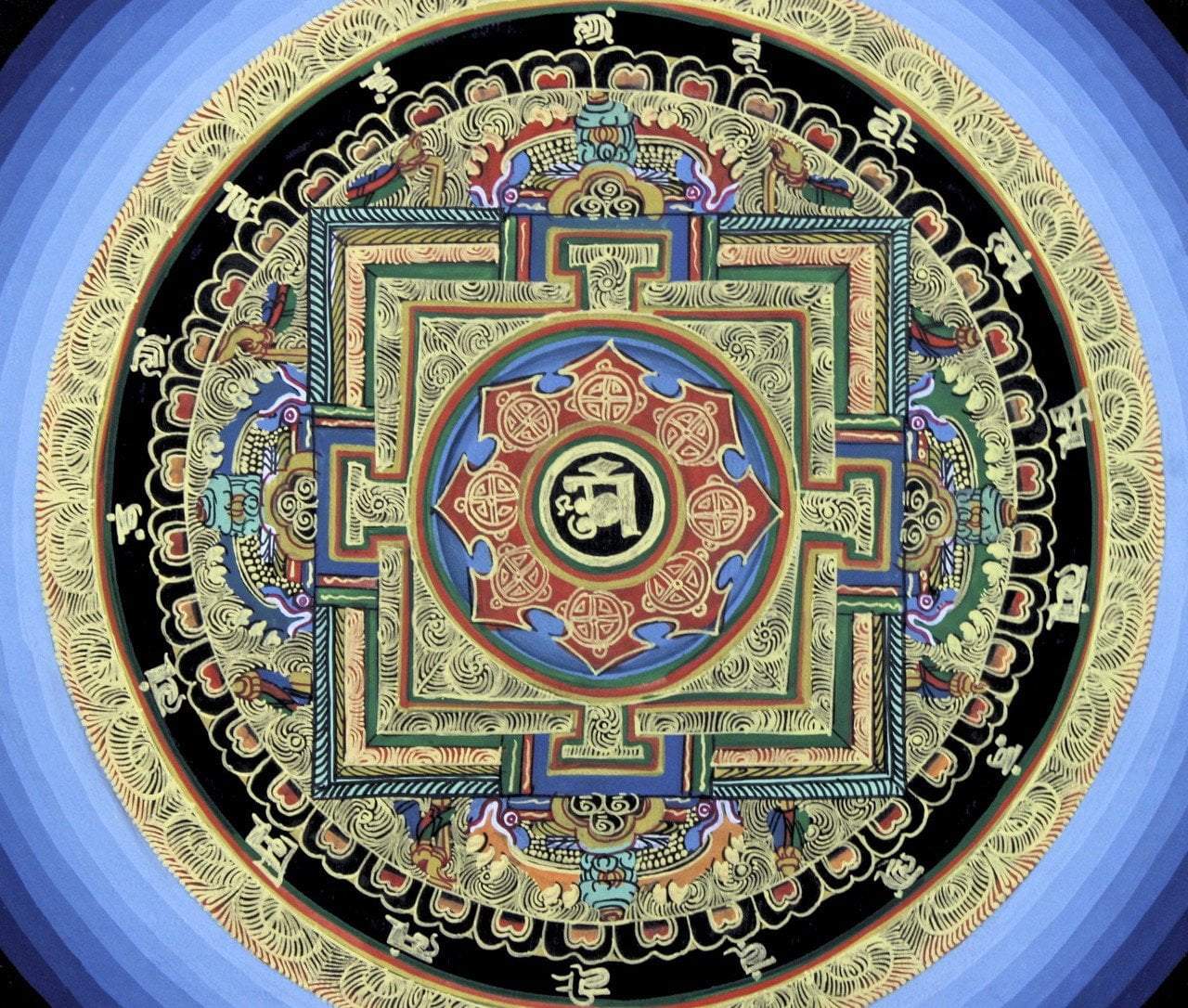 ¡Nuestros nuevos creadores de thangka continúan enviándonos trabajos increíbles! Este mandala está pintado a mano con pintura de pan de oro. ¡Detalle notable!