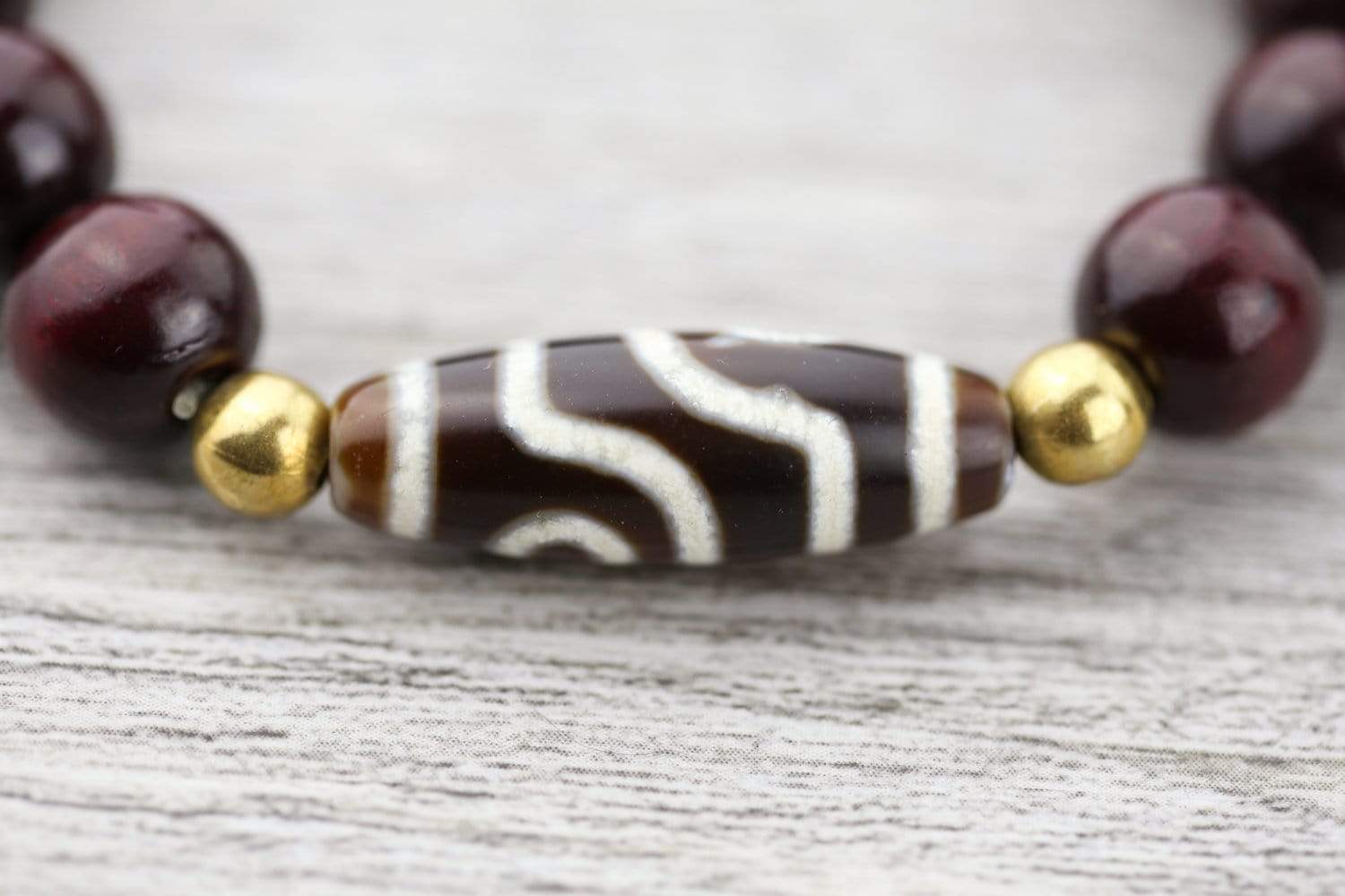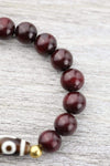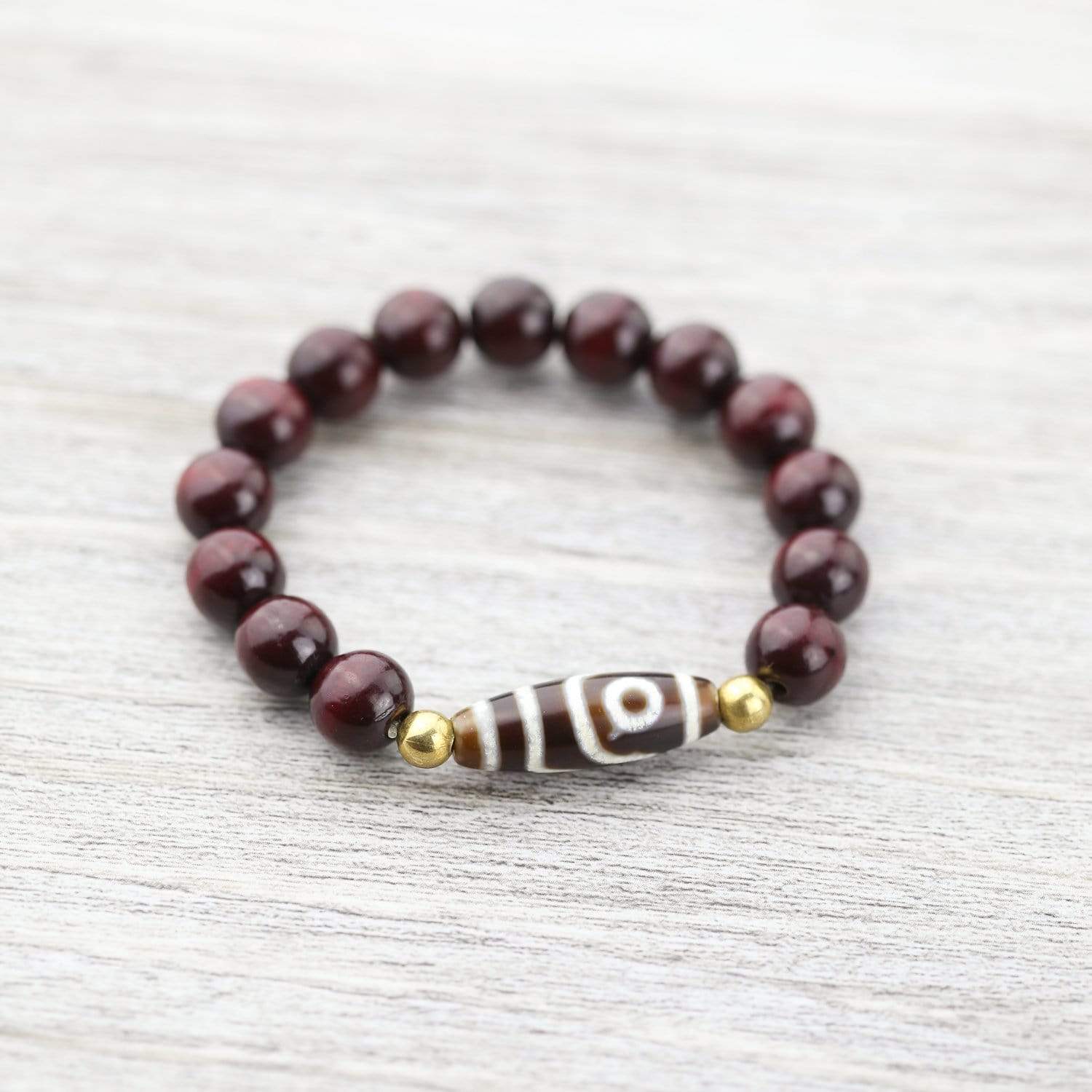 La pulsera mide aproximadamente 6,5 pulgadas alrededor con cordón elástico. Las cuentas miden unos 11 mm. Dzi mide aproximadamente 1,1 pulgadas.