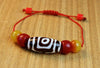 Pulsera de hueso de cuentas dzi de tres ojos con cuentas de copal de resina ensartadas en cordón rojo. Hecho a mano en Nepal.