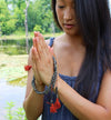Mide aproximadamente 24 pulgadas alrededor. Contiene cuentas de 8 mm. Hecho a mano a la sombra de la gran estupa de Boudhanath.