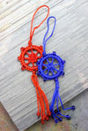 Cada vez que viajo a comunidades tibetanas compro un amuleto hecho a mano para colocarlo en mis cuentas mala. Estos amuletos hechos a mano miden 4 pulgadas de largo y también se pueden colgar del espejo de un automóvil.