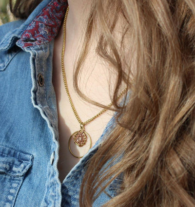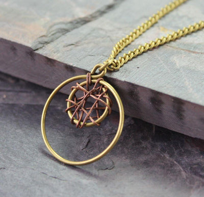 Este collar está elaborado a partir de cables reciclados recogidos de dispositivos electrónicos desechados y otras piezas metálicas recogidas en la región del Himalaya del norte de la India. En su mayoría están hechos de cobre y han sido probados profesionalmente para garantizar que no contengan metales nocivos. La producción de esta pieza de joyería ayuda a reducir el desperdicio y proporcionar un medio de vida sostenible a estos artesanos emprendedores.