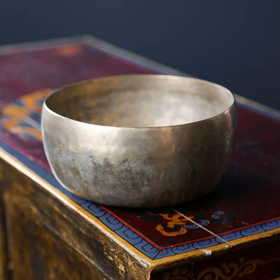 Cada vez que podemos conseguir una pequeña colección de estos cuencos es emocionante ya que son excepcionales. Los cuencos tibetanos antiguos como este son muy buscados por su notable calidad de sonido, ricos tonos y características físicas únicas. ¡Cada marca hecha a mano cuenta una historia de la historia de los cuencos!