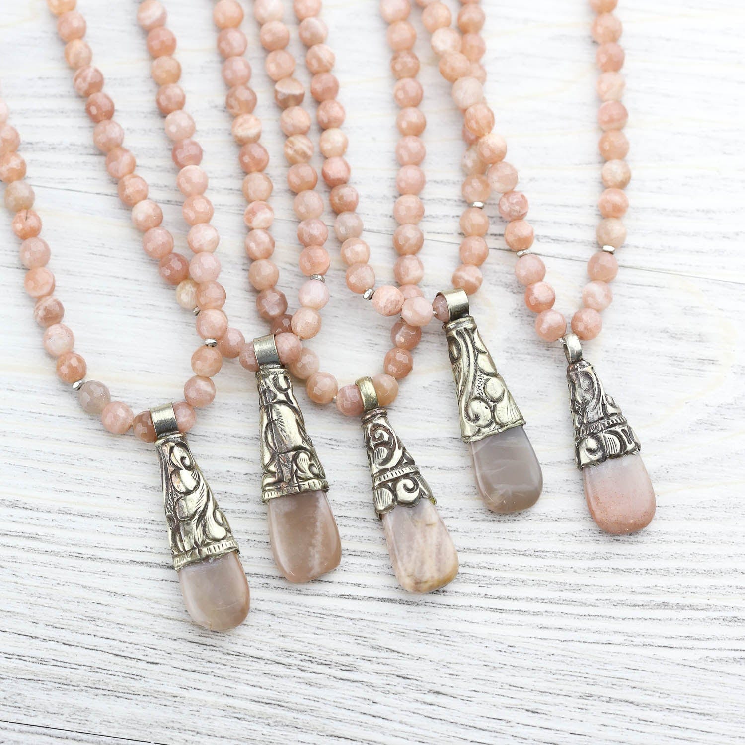 Moonstone trae buena suerte, mejora la intuición y promueve la inspiración. Peach Moonstone apoya el corazón ya que estimula la mente, calma la preocupación o la ansiedad y saca lo mejor de las personas. Muchos han considerado la piedra lunar como una conexión tangible con la magia de la luna.