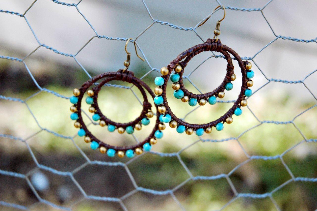 Hecho a mano en Katmandú Nepal. Pendientes indios de doble aro. 50 centímetros de alto.