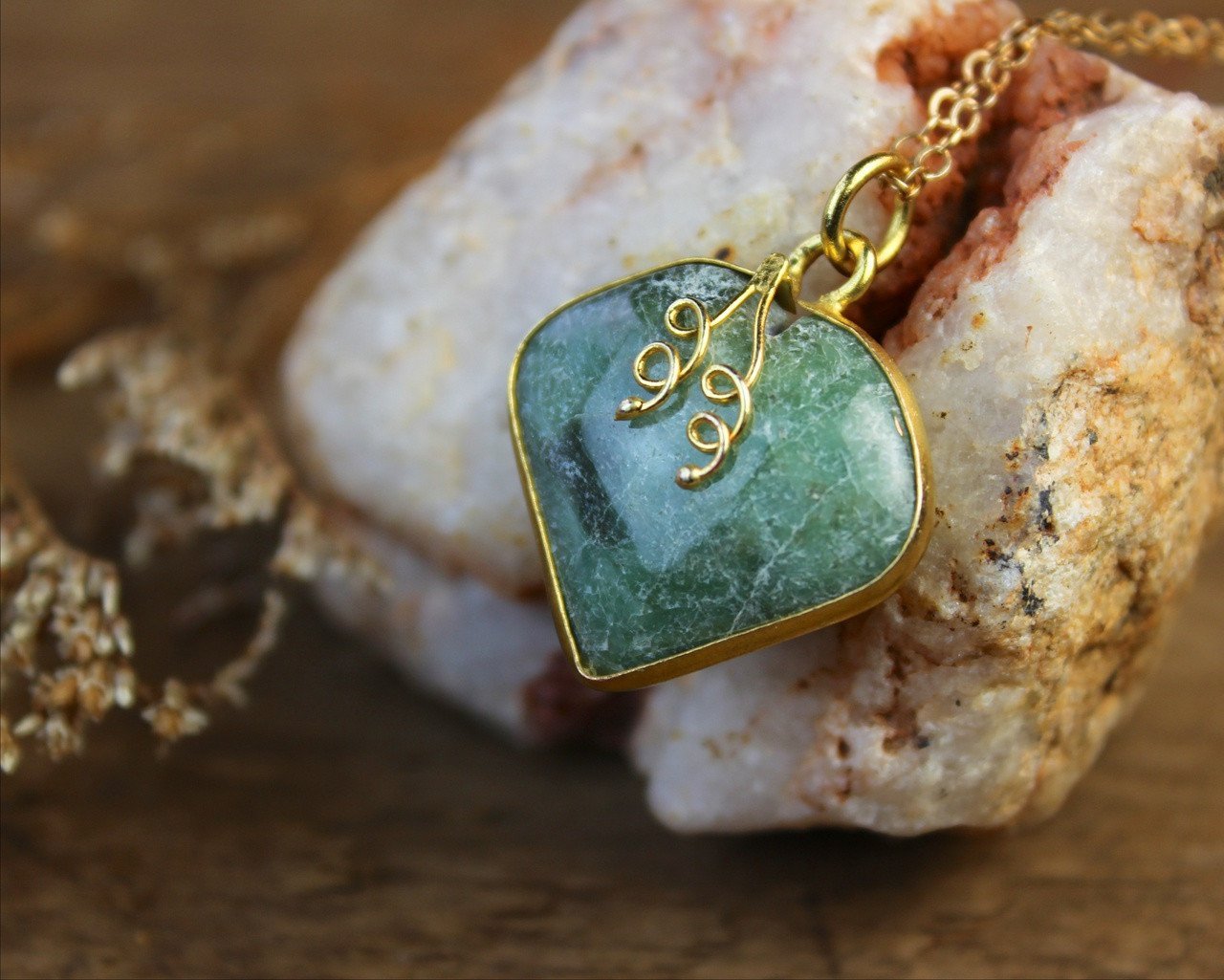 Fresa de piedra jade verde con diseño dorado. Tallado a mano y fabricado en Nepal.