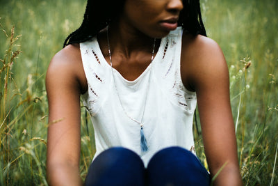 El collar mide alrededor de 27" alrededor. La borla mide 2 1/2" de largo.