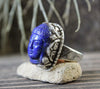 Un increíble anillo ajustable con un Buda de la Medicina de Lapislázuli engastado en plata.