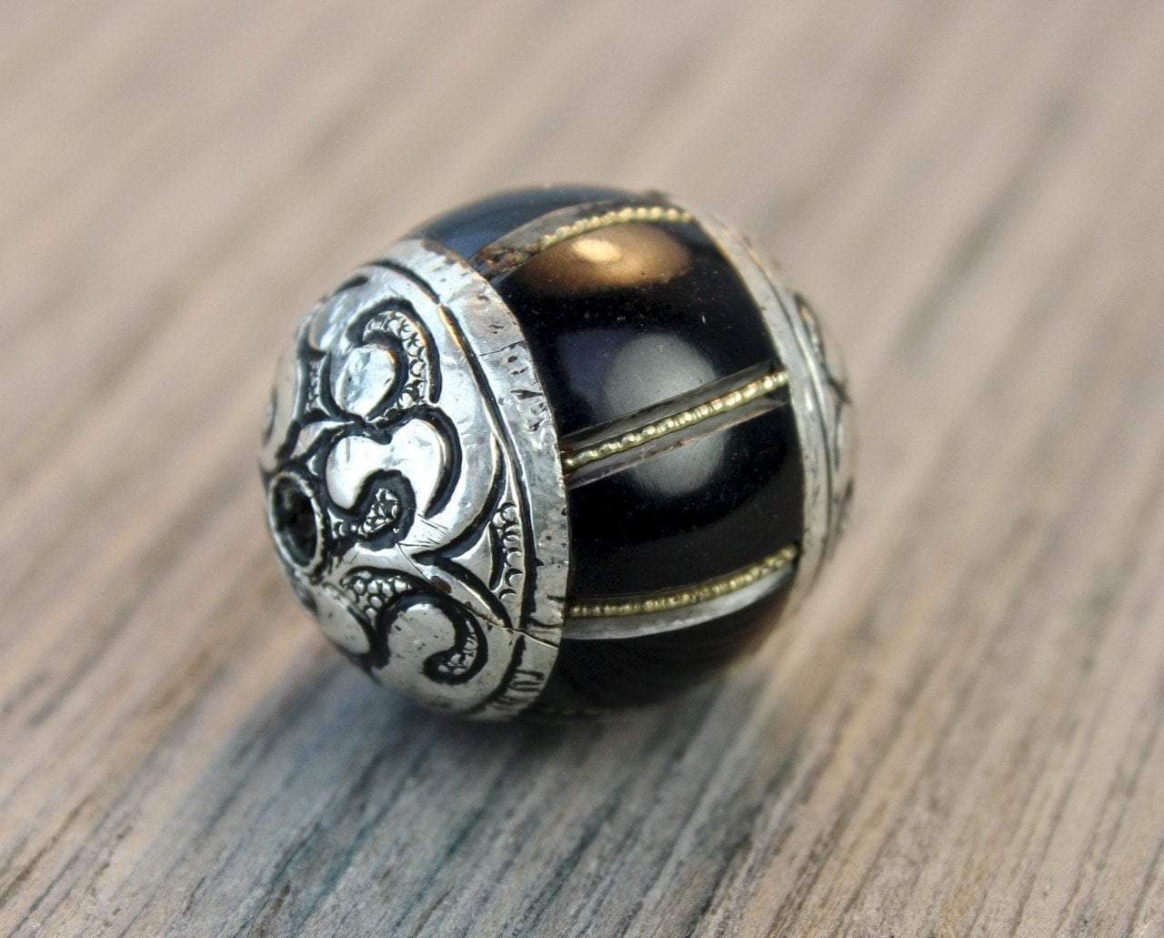 Esta cuenta de copal muy grande está envuelta en plata y rematada con una plata tradicional finamente detallada. Tamaño: 23 mm por 21 mm