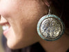 A las mujeres tibetanas les encanta usar aretes grandes y atrevidos, estos son discos de 2 pulgadas con incrustaciones de turquesa y ganchos franceses de plata esterlina.