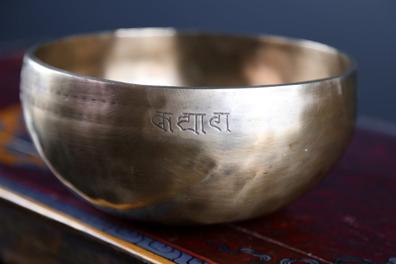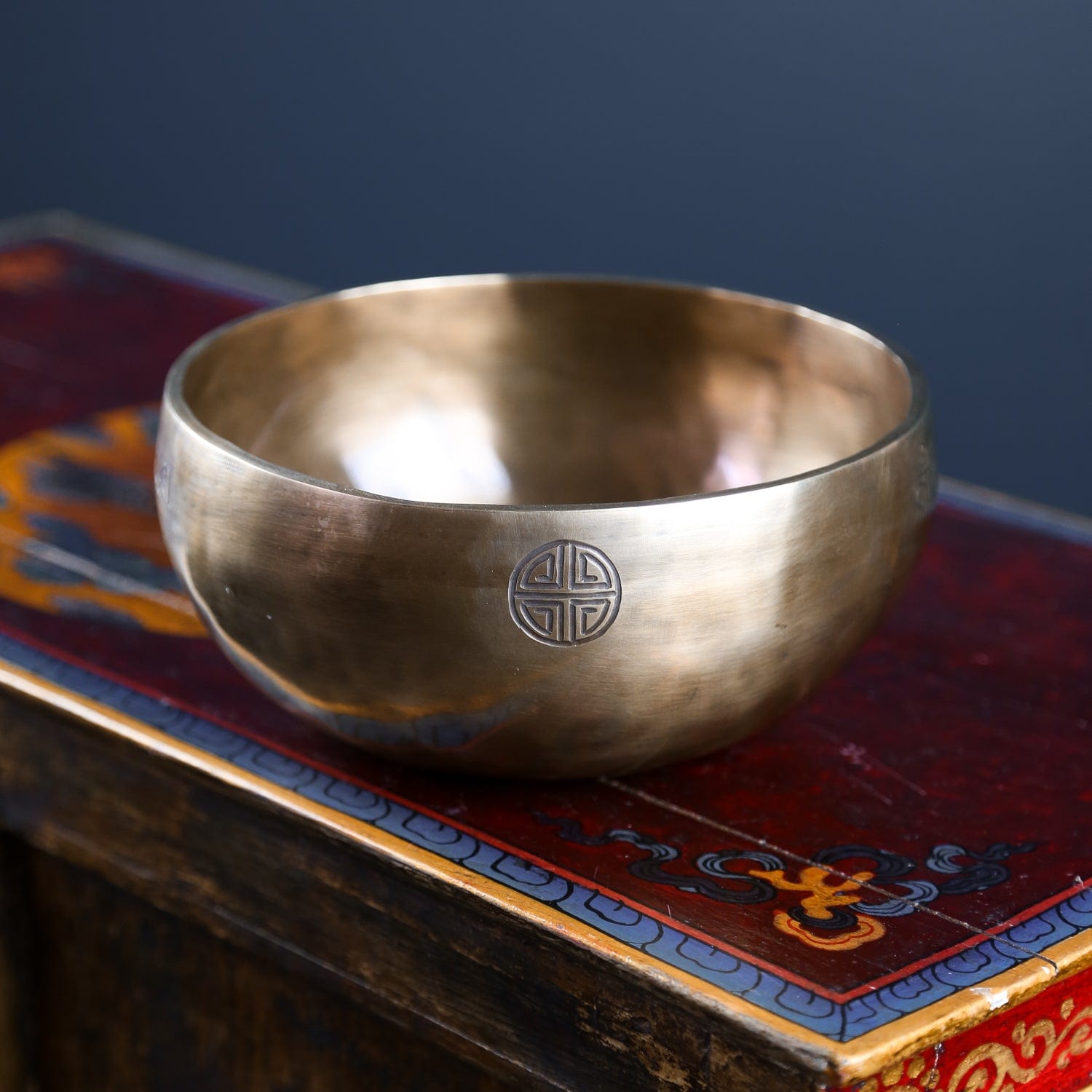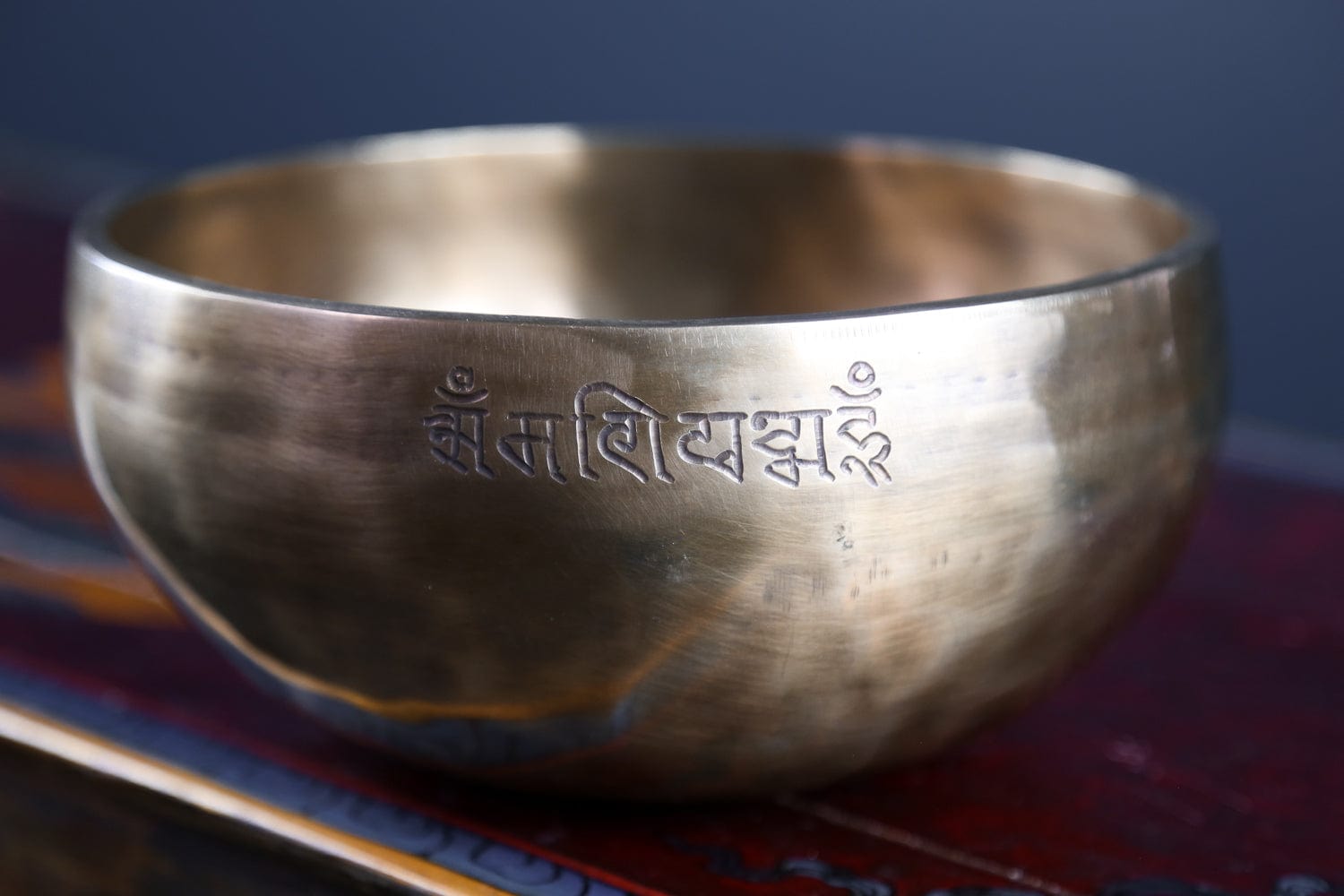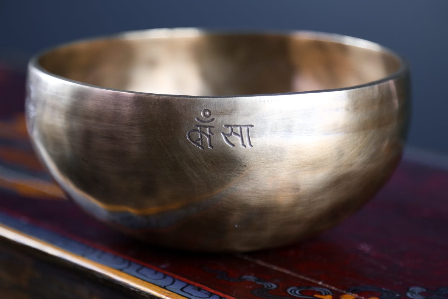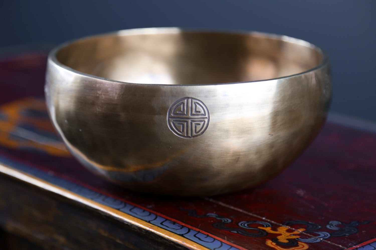 El cuenco suena en una nota La cuando se golpea con un mazo de lana. Esta nota resuena con el chakra del tercer ojo. Cuando este chakra está equilibrado, podemos conectarnos mejor con nuestra intuición e imaginación, visualizar, concentrarnos, tener percepción, iluminación y una conciencia finamente sintonizada.