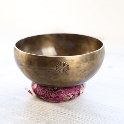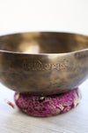 Bowl rings at an F# note when struck with a woolen mallet. This note resonates with the Heart Chakra, which is the center of real, unconditional affection, spiritual growth, compassion, devotion and love.