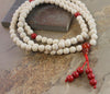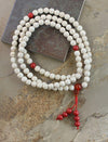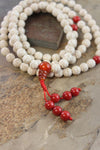Hermosas cuentas de magnesita con 3 espaciadores de coral de corazón teñidos de blanco y una cuenta de gurú de cornalina.
