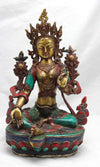 Esta exquisita estatua de tara verde está hecha a mano en el valle de Katmandú. Cada estatua será ligeramente diferente en la variación de color y la ubicación de los mosaicos y las piedras preciosas.