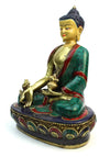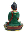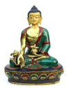 Esta estatua del Buda de la Medicina está hecha a mano en Katmandú, Nepal, por una familia de artesanos de quinta generación. Cada estatua se fabrica utilizando el método de cera perdida, lo que requiere mucho tiempo y habilidad. Después de la fundición de bronce, cada estatua es detallada y tallada a mano por maestros artesanos. La cara está pintada de oro y las túnicas están alicatadas a mano.