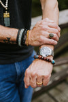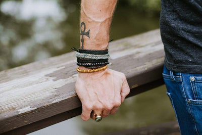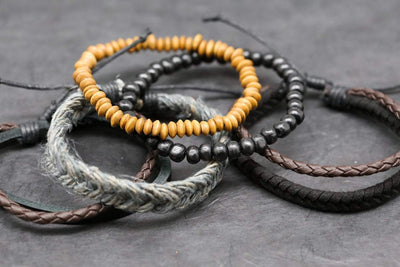 Cada pulsera se puede usar sola o como un juego completo para una apariencia apilada contemporánea. Los materiales suaves y ajustables son ideales para combinar con un reloj o junto con tus otras pulseras y malas favoritas.