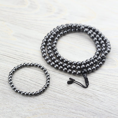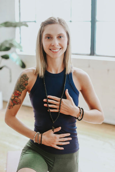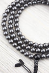 El collar Mala mide aproximadamente 30 pulgadas de diámetro con un nudo ajustable.