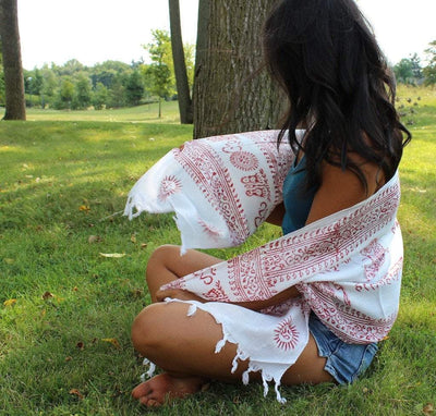 A nuestra línea de bufandas de oración hechas a mano e impresas a mano se suma esta ligera y aireada bufanda de algodón. Acabado elegante con extremos de borlas atados a mano.