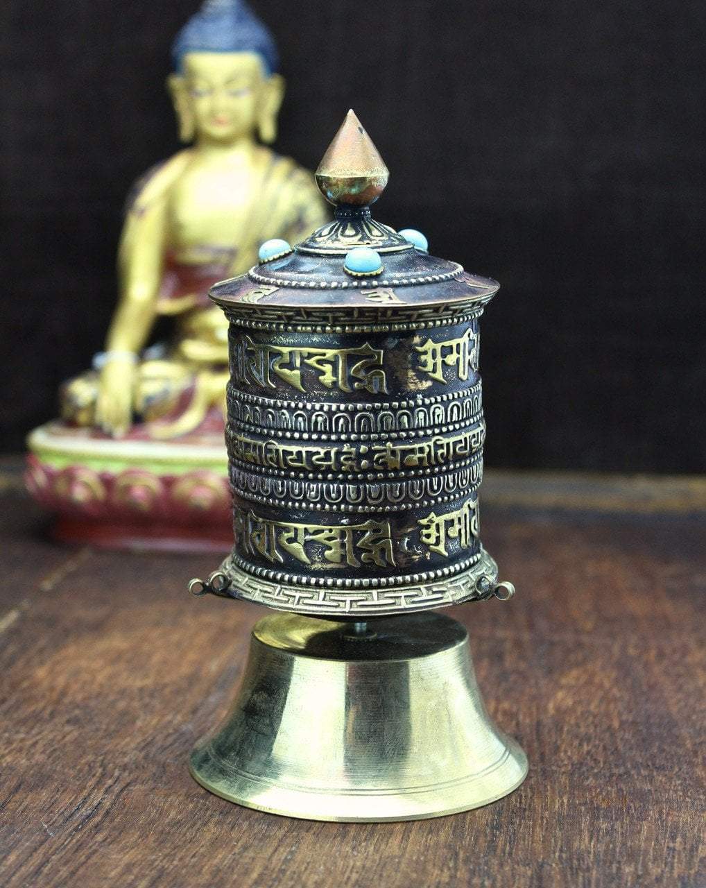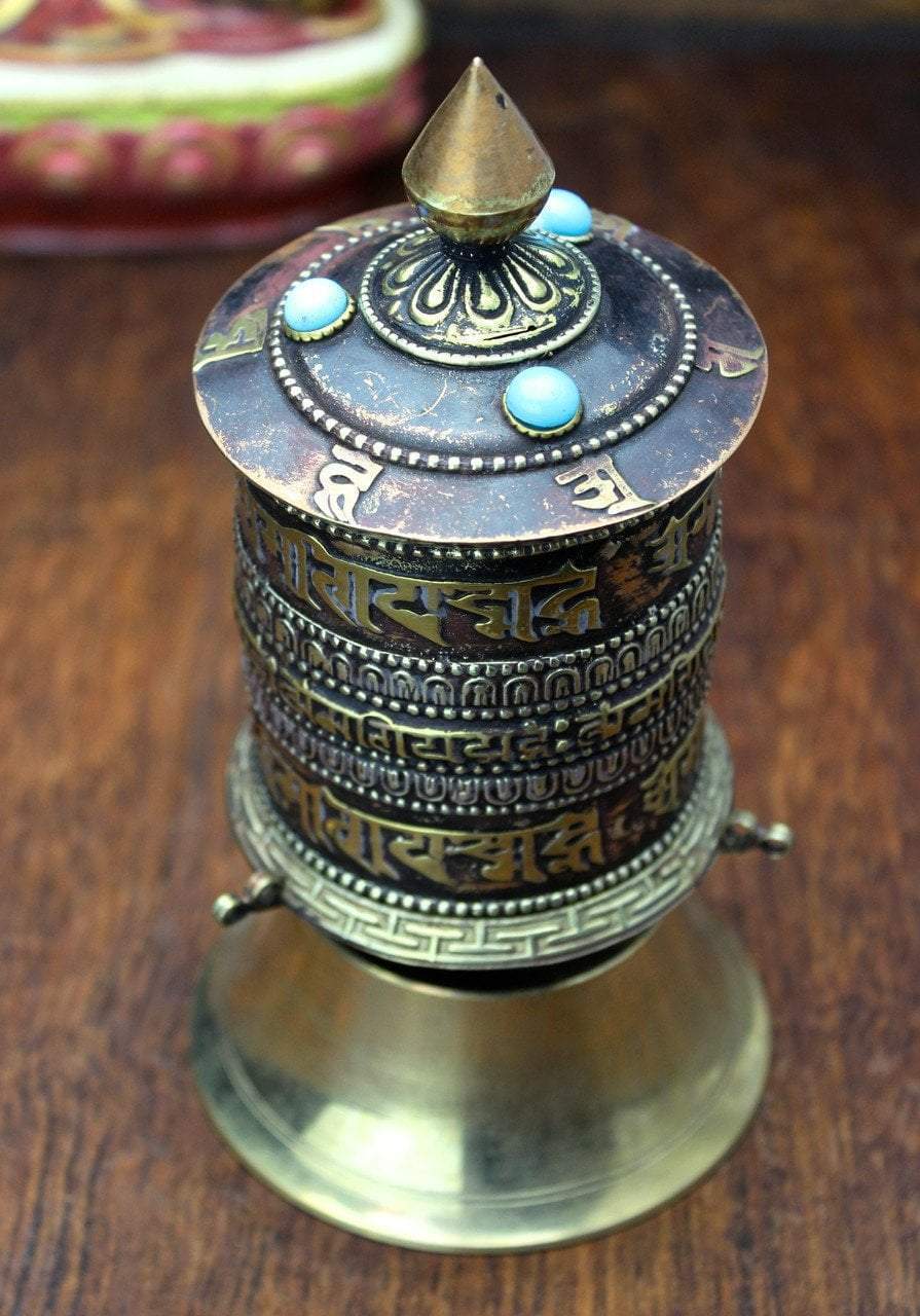 Rueda de oración tibetana de escritorio OM Mani Padme con coral