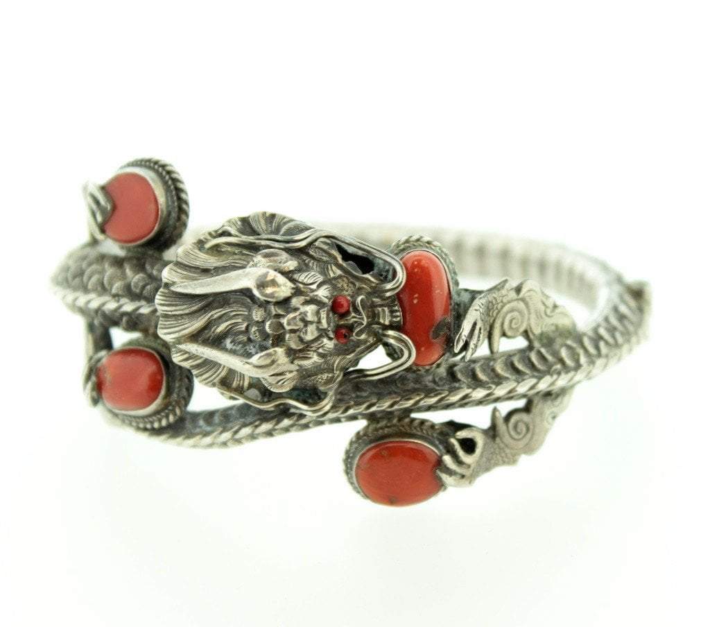 Procedente de Katmandiu Nepal de una gran colección de piezas vintage. Plata de primera ley maciza con incrustaciones de coral. Trabajo superior realizado por artesanos excepcionales. Este artículo fue adquirido en Katmandú en los años 80 por un coleccionista. La plata es mejor que la esterlina y tiene un cierre de rosca para adaptarse a una muñeca de hasta 7 pulgadas de diámetro.