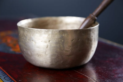 Cada vez que podemos conseguir una pequeña colección de estos cuencos es emocionante ya que son excepcionales. Los cuencos tibetanos antiguos como este son muy buscados por su notable calidad de sonido, ricos tonos y características físicas únicas. ¡Cada marca hecha a mano cuenta una historia de la historia de los cuencos!