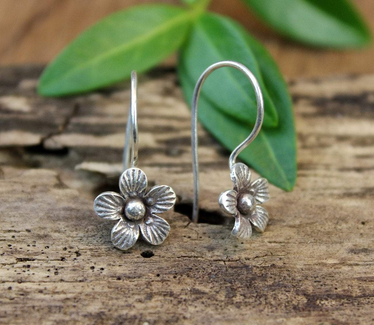 Pendientes de flores bañados en plata. Los pendientes están montados en un gancho francés plateado. Hecho a mano en Nepal.