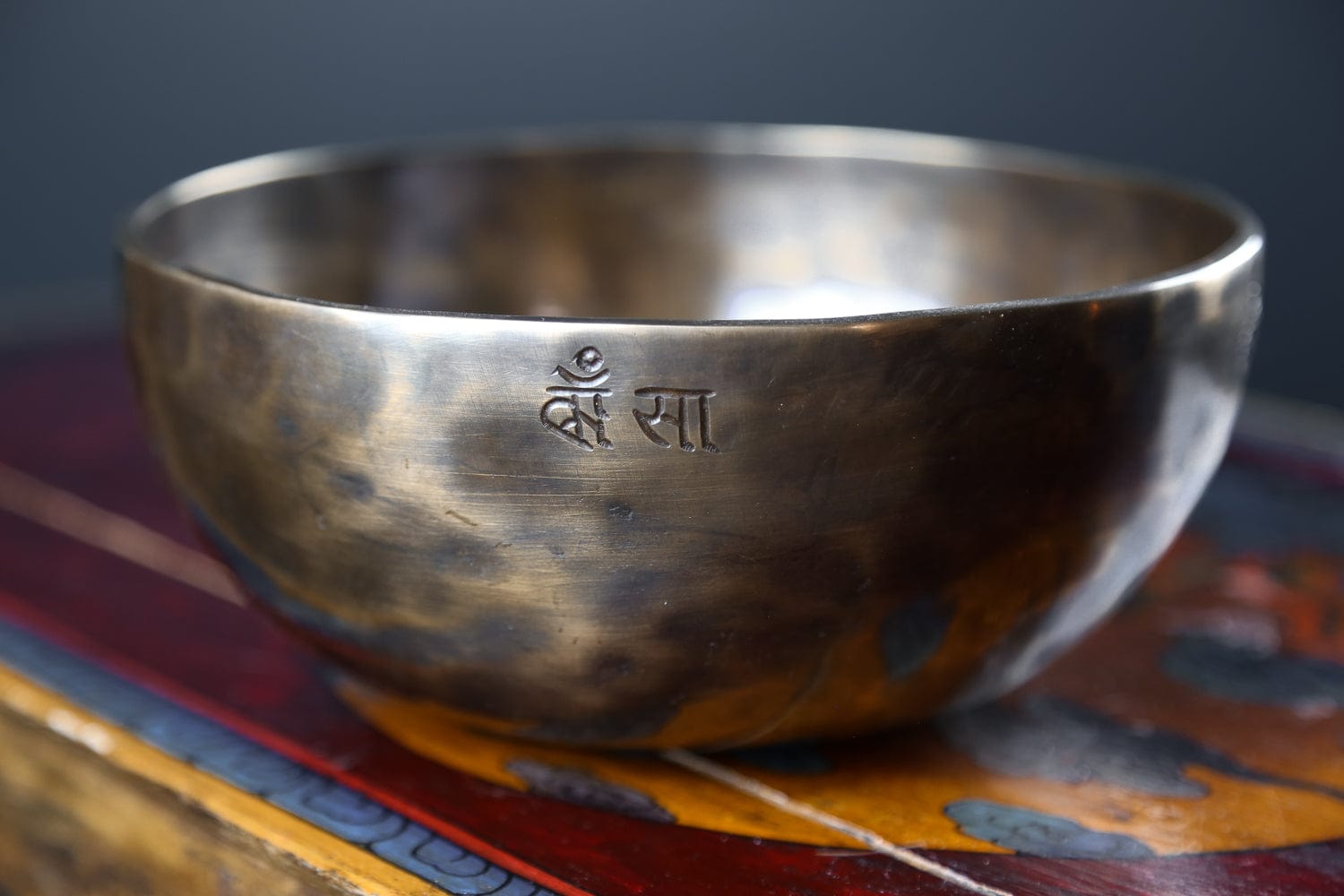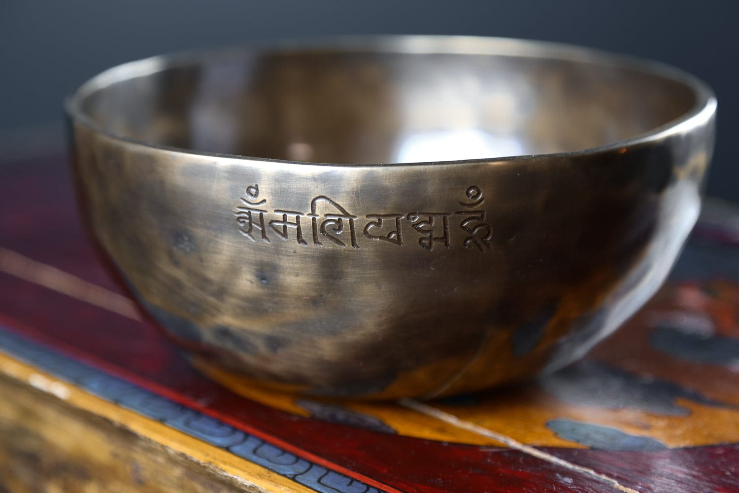 El cuenco suena en una nota F# cuando se golpea con un mazo de lana. Esta nota resuena con el Chakra del Corazón, que es el centro del afecto real e incondicional, el crecimiento espiritual, la compasión, la devoción y el amor.