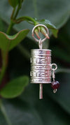 Nuestro nuevo colgante de rueda de oración es plateado con Om Mani Padme Hung en el exterior y oraciones envueltas en el interior. ¡Realmente gira!