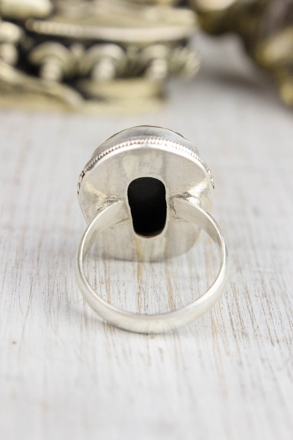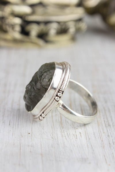 Anillo de tamaño. La cabeza de Buda mide aproximadamente 1 pulgada de alto, 3/4 de pulgada de ancho y 3/8 de pulgada de espesor. Fabricado en Nepal.