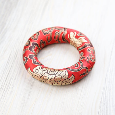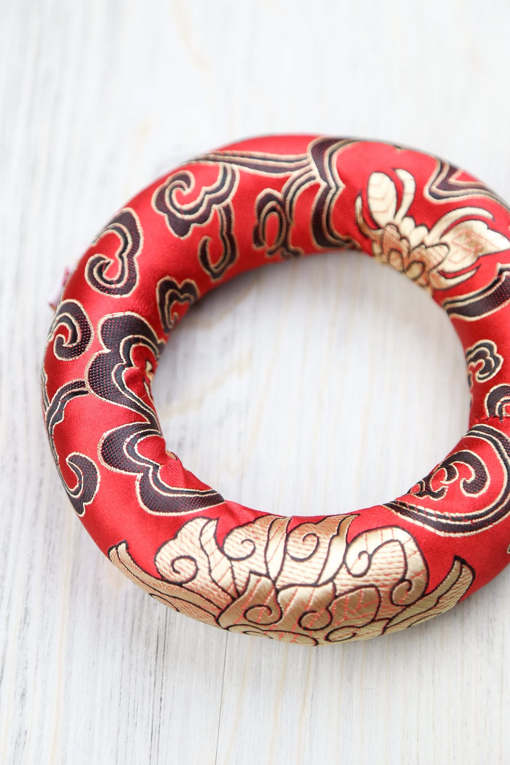 El cojín mide aproximadamente 4-5 pulgadas de diámetro y aproximadamente 1 pulgada de espesor.