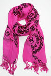 ¡Una bufanda ligera perfecta para la primavera y el otoño! Flecos sencillos en los extremos y un nuevo diseño de Om y Mantra adornan esta bufanda de algodón súper suave. Hecho a mano en Katmandú, Nepal.