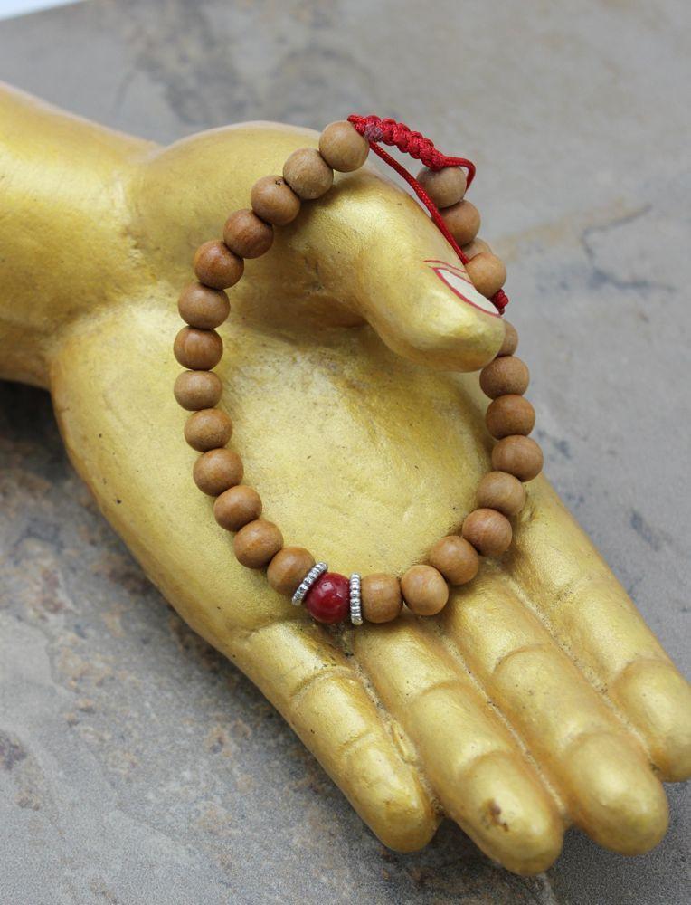 Una hermosa muñeca mala ajustable de sándalo con un espaciador de jade de montaña. Ajustable con nudo corredizo