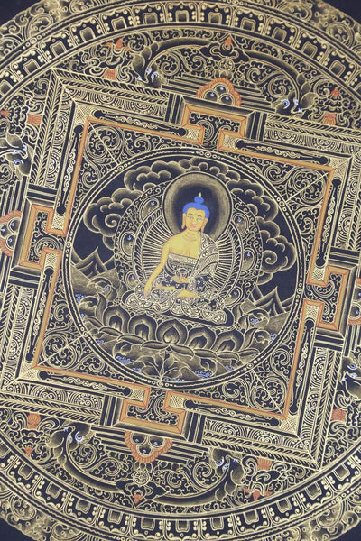 Cada detalle está pintado a mano sobre lienzo de algodón utilizando pigmentos minerales y vegetales naturales con detalles en oro de 24 quilates. Las intrincadas pinceladas y los extraordinarios detalles hacen de estos thangkas auténticas obras de arte. Viene sin marco y listo para enmarcar al estilo occidental de su elección.
