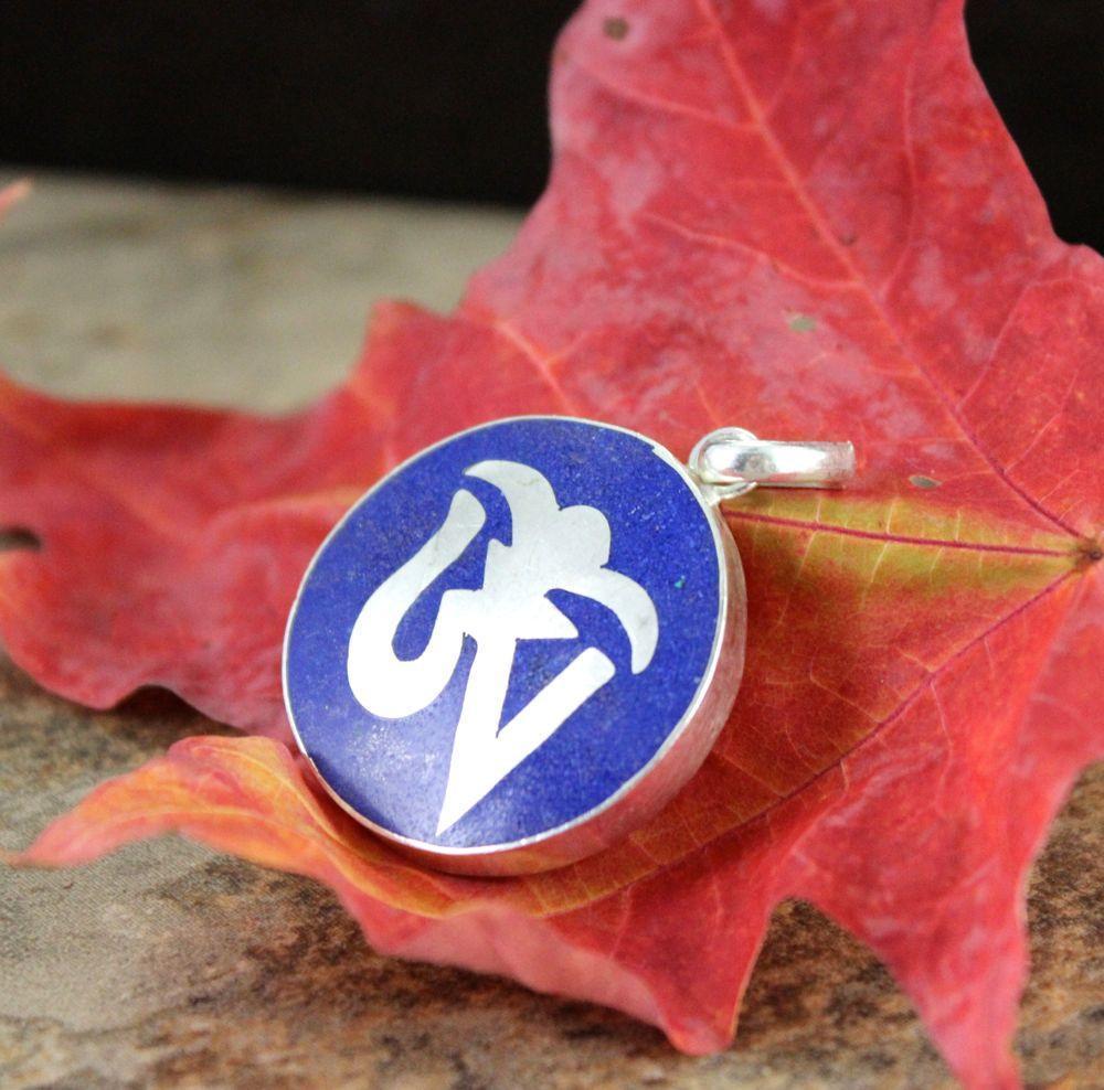 Nuestro nuevo lapislázuli Om es una piedra lapislázuli maciza con un Om plateado pintado a mano por artesanos tibetanos.
